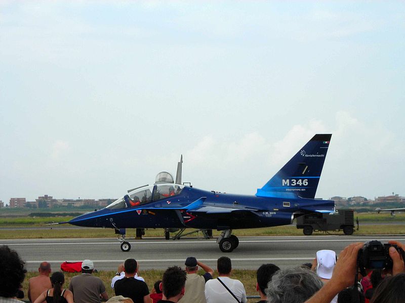對於臺灣最新一代噴射教練機的龐大商業利益,雖然長久以來各派人馬互不相讓(大致分為IDF精減版本的XAT-5噴射教練機種,或者是AT-3版本的噴射教練機種,乃至於義大利的M346噴射教練機種)?!然而對於久想盛名的義大利的阿徠霓雅-馬奇航空工業公司(Alenia-Aermacchi Corporation)而言,仍然是信心滿滿且雄心勃勃?!只是何以阿徠霓雅-馬奇航空工業公司會如此的樂觀呢?原來阿徠霓雅-馬奇航空工業公司,本身正是生產製造歐洲颱風戰鬥機(Eurofighter-Typhoon)的四大主要技術國家廠商之一(其他的歐洲國家為英國,法國和西班牙;其中英國負責發動機,法國主導航電飛彈系統,西班牙支援相關附屬系統),故而是衣食無缺(颱風戰鬥機即是歐盟的主要聯合戰機,預算從來都不是問題)?所以才能待價而沽?!看來臺灣如果想要在戰機的發動機技術上獲得突破,歐系的M346噴射教練機,的確會是不錯的敲入門磚?只是令人擔心的是,義大利的M346噴射教練機的優勢技術,會不會最後又神鬼莫測的流向於中國大陸?恐怕現在誰都不知道?而這無疑正是臺灣政府需要仔細評估的重點所在!否則臺灣的自制戰機計劃,未來又要何去何從呢?! 圖片為M-346教練機機場停泊英姿,By SCD Bob From Wikipedia