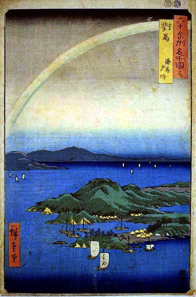 對於生性強悍的韓國朝鮮民族而言,怎麼能夠容忍距離朝鮮半島南方釜山僅僅不到50公理的對馬島(Tsushima Island),竟然至今仍然被日本政府所牢靠的統治管理(對馬島雖離日本有130多公里之距,不過問題是,島上的統治家族,自幕府時代開始,即聽從日本江戶幕府大將軍的差遣來辦事)?!實在是叫韓國老百姓是,孰可忍?孰不可忍?然則對於產區在對馬島周遭海域(所謂的對馬海峽,包含了釜山濕地海域在內)的韓國文蛤而言,卻也無奈的陷於池魚之殃的困境之中(韓國文蛤棲息地不但遭受到嚴重的人為污染,此外本身也被兩國漁民大量的濫捕,以至於前途未卜),而連帶的欲哭無淚呢?! 本圖片為古代日本畫家所描繪之對馬島漁港作業畫作